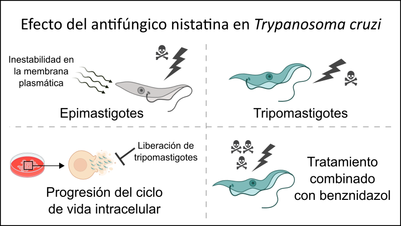 El antifúngico nistatina presenta actividad contra el parásito Trypanosoma cruzi con igual o mayor eficiencia que el benznidazol, el medicamento de referencia, e incluso la combinación de ambos fármacos muestra un efecto potenciado in vitro.